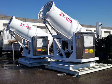 120米車載式霧炮機用于施工現(xiàn)場降塵作業(yè)