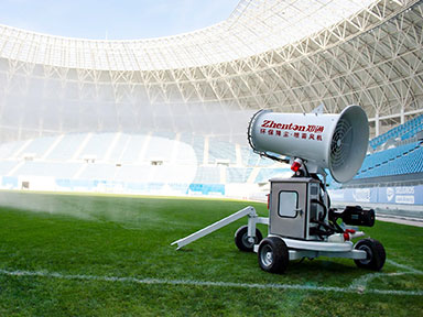 ZT-20覆帶式霧炮機,整機僅3 kW總功率,風機1.5 kW,可打出15-20米靜風射程,輕松覆蓋1200 m大面積,24個精密不銹鋼雙流噴頭,把水…